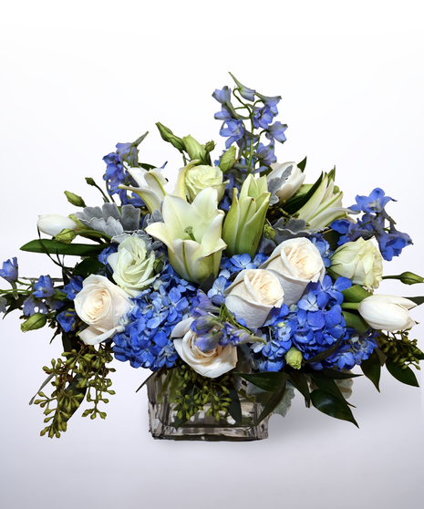 The Sea Breeze arrangement is a magnificent work of art, expertly designed to bring a sense of calmness and tranquility to any room. It is the perfect gift for someone who loves the ocean, summer, or anything blue and white.