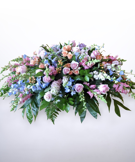 Anyone may send floral baskets, vased arrangements or living plants. Floral wreaths, crosses, and sprays are appropriate when sent by anyone personally acquainted with the deceased or the family of the deceased. Tributes, casket covers, and urn arrangements are traditionally reserved for family members. Should you wish to send an arrangement of this type, be sure to ask the family first. If you would like to learn more about funeral flower etiquette, view our Funeral Etiquette guide.